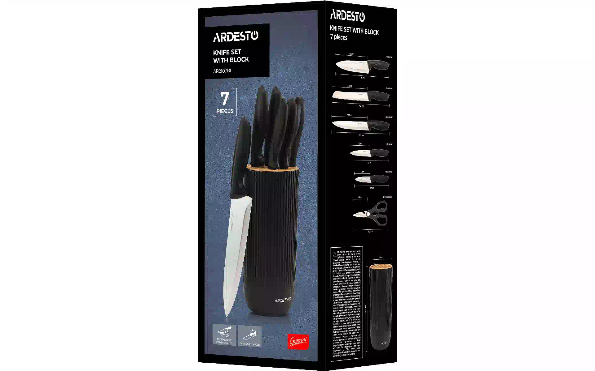Set of knives Ardesto Gemini, Black (AR2107BL) شراء جديدة ومبتكرة، ومجهزة بالكامل، دون تفريغ في أوكرانيا، من مستودع في كييف، مع ضمان رسمي ودعم فني من الشركة المصنعة في أوكرانيا