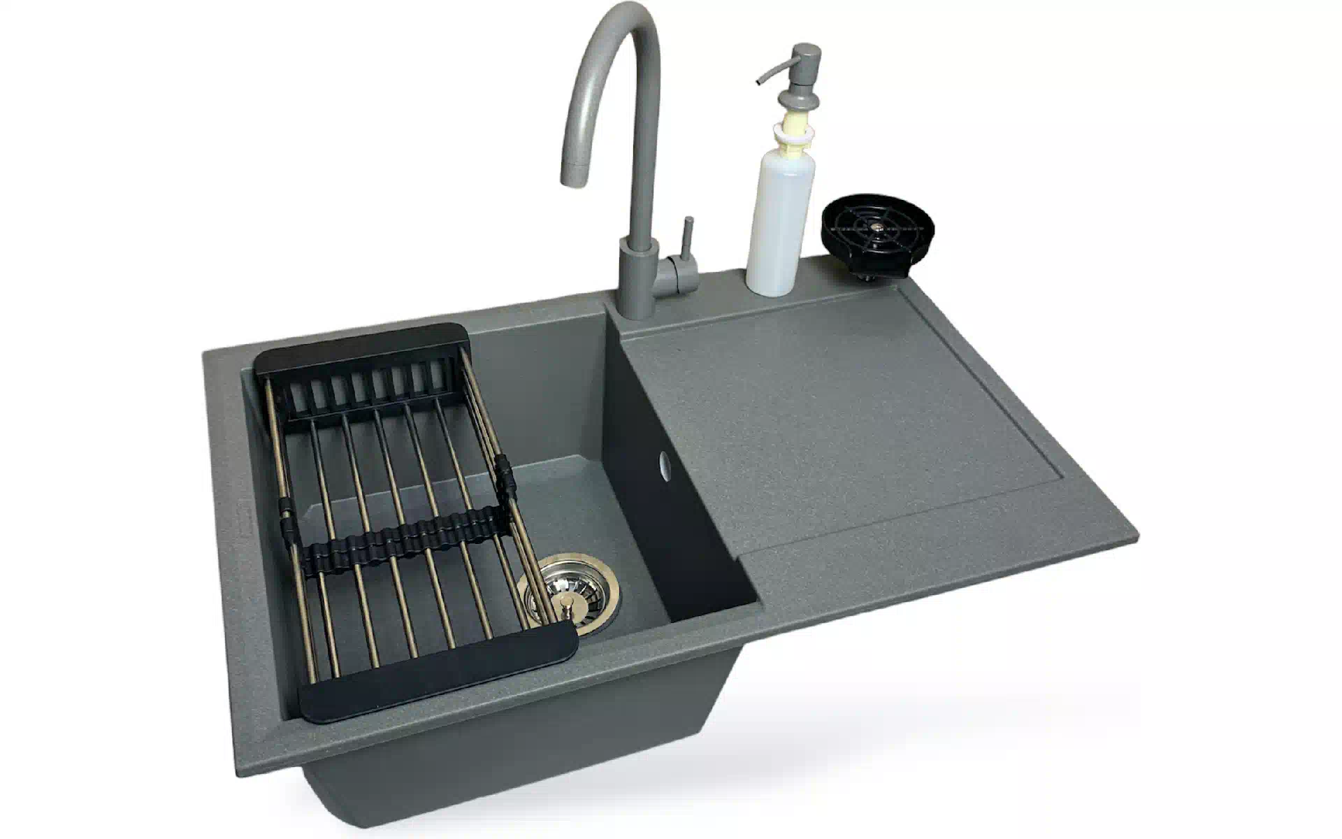 Кухненска мивка + смесител + диспенсър Adamant Horizon, Grey (1824296901504)