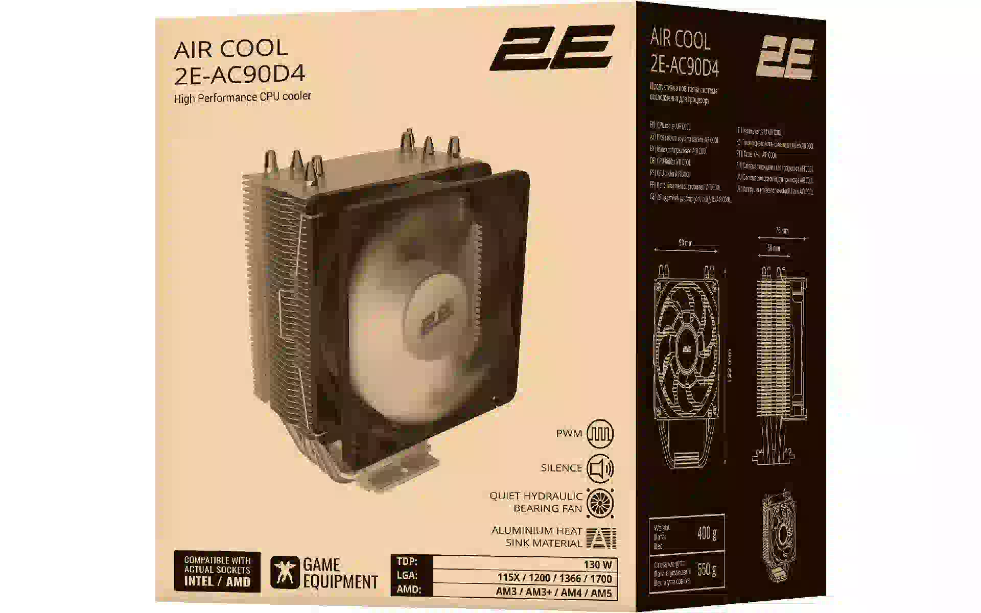 CPU-Kühler 2E (2E-AC90D4) Kaufen Sie neu und original, voll ausgestattet, ohne Auspacken in der Ukraine, in einem Lager in Kiew, mit offizieller Garantie und technischem Support vom Hersteller in der Ukraine.