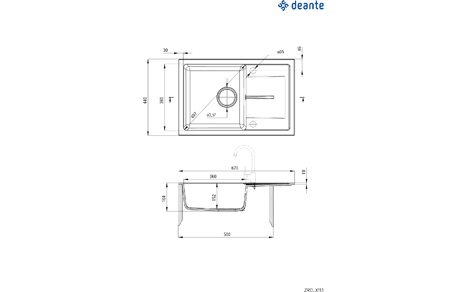 Küchenspüle Deante (ZRDGS113) Kaufen Sie neu und original, voll ausgestattet, ohne Auspacken in der Ukraine, in einem Lager in Kiew, mit offizieller Garantie und technischem Support vom Hersteller in der Ukraine.