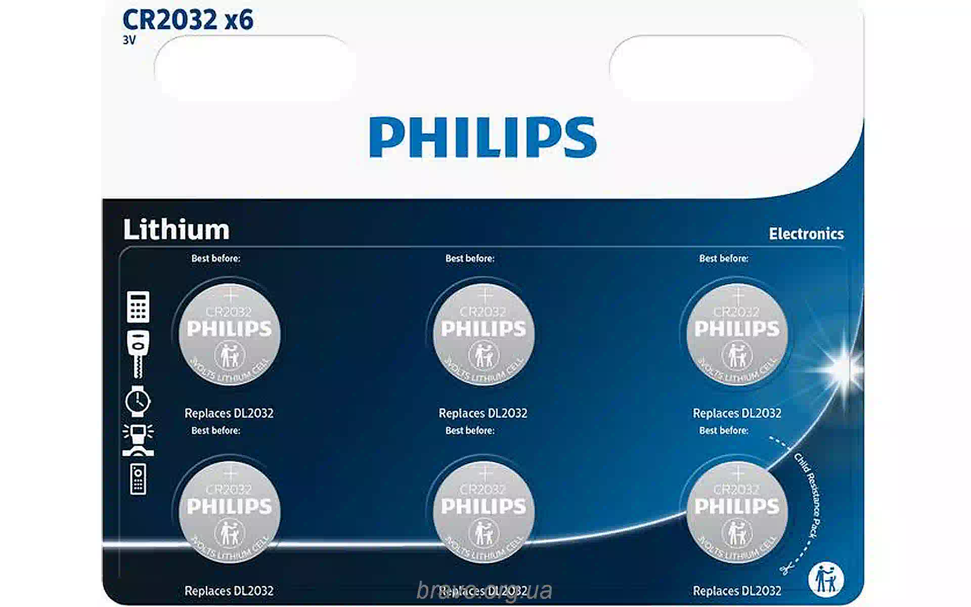 Batterie Philips CR2032 (CR2032P6/01B) Kaufen Sie neu und original, voll ausgestattet, ohne Auspacken in der Ukraine, in einem Lager in Kiew, mit offizieller Garantie und technischem Support vom Hersteller in der Ukraine.