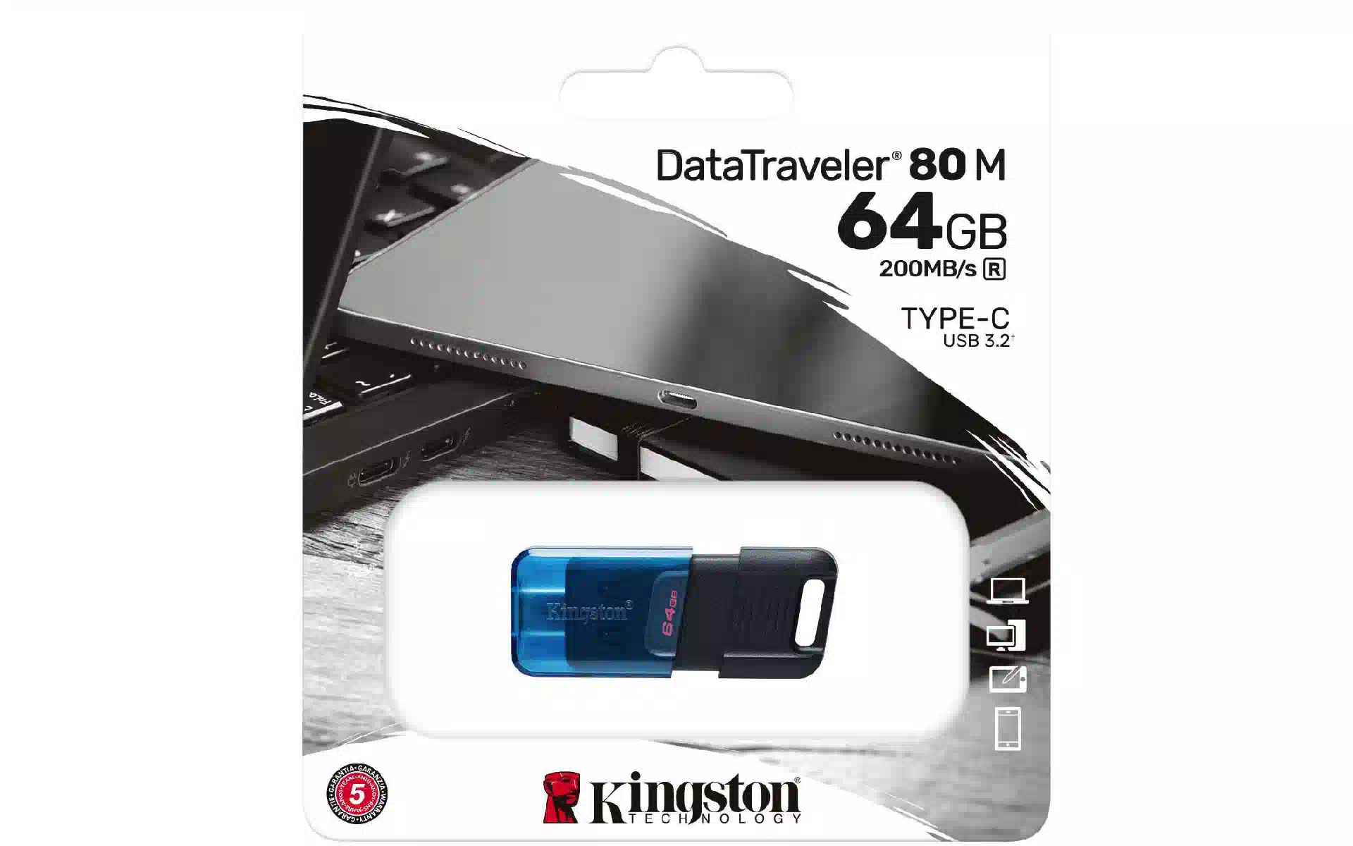 USB-Laufwerk Kingston (DT80M/64GB) Kaufen Sie neu und original, voll ausgestattet, ohne Auspacken in der Ukraine, in einem Lager in Kiew, mit offizieller Garantie und technischem Support vom Hersteller in der Ukraine.