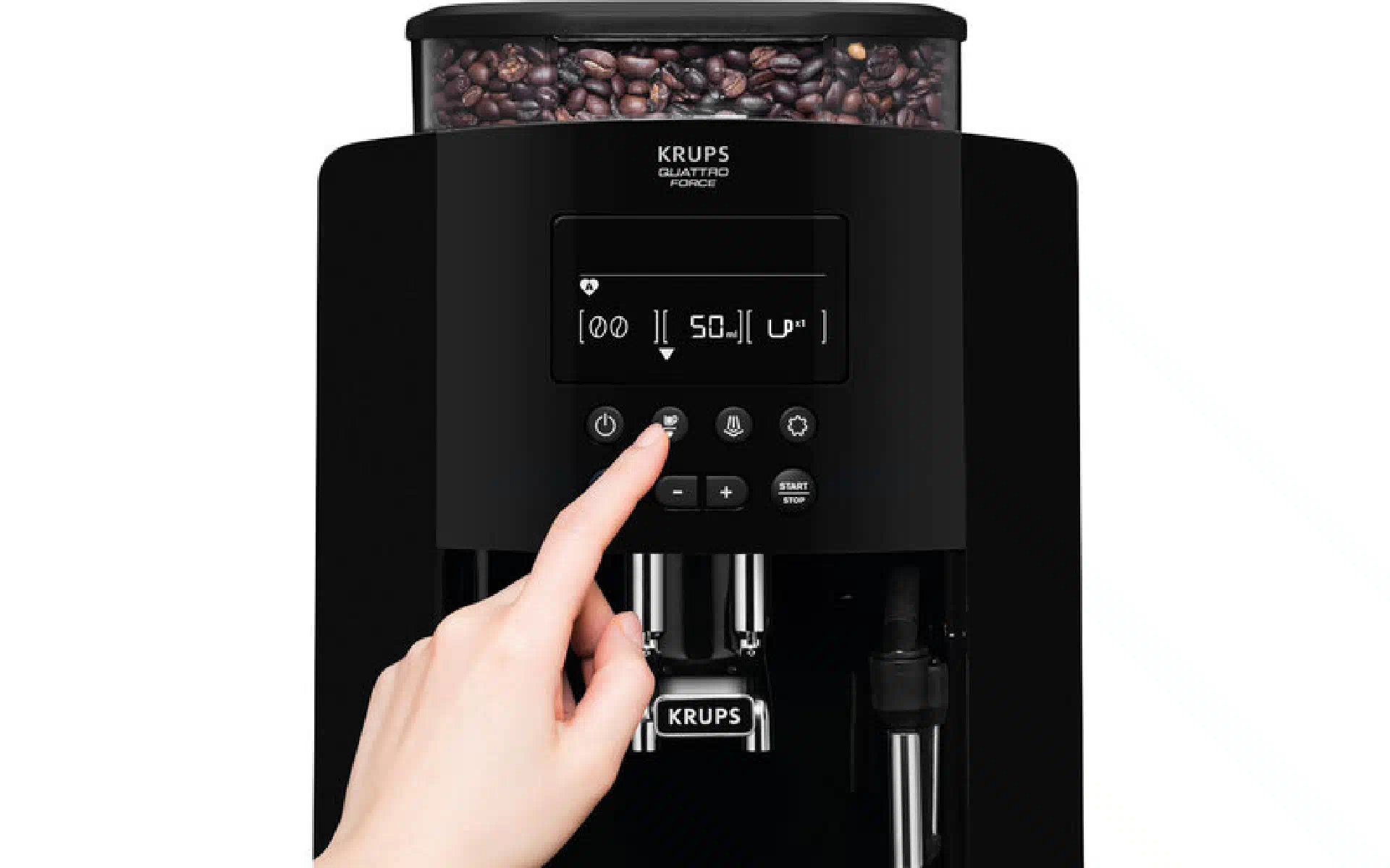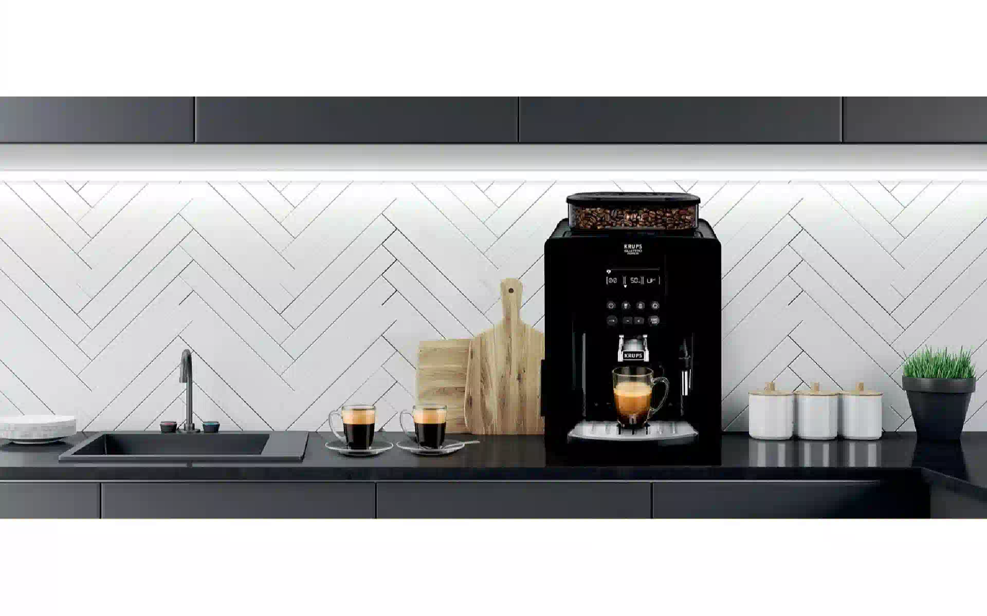 Kaffeemaschine Krups Arabica, Black (EA817010) Kaufen Sie neu und original, voll ausgestattet, ohne Auspacken in der Ukraine, in einem Lager in Kiew, mit offizieller Garantie und technischem Support vom Hersteller in der Ukraine.
