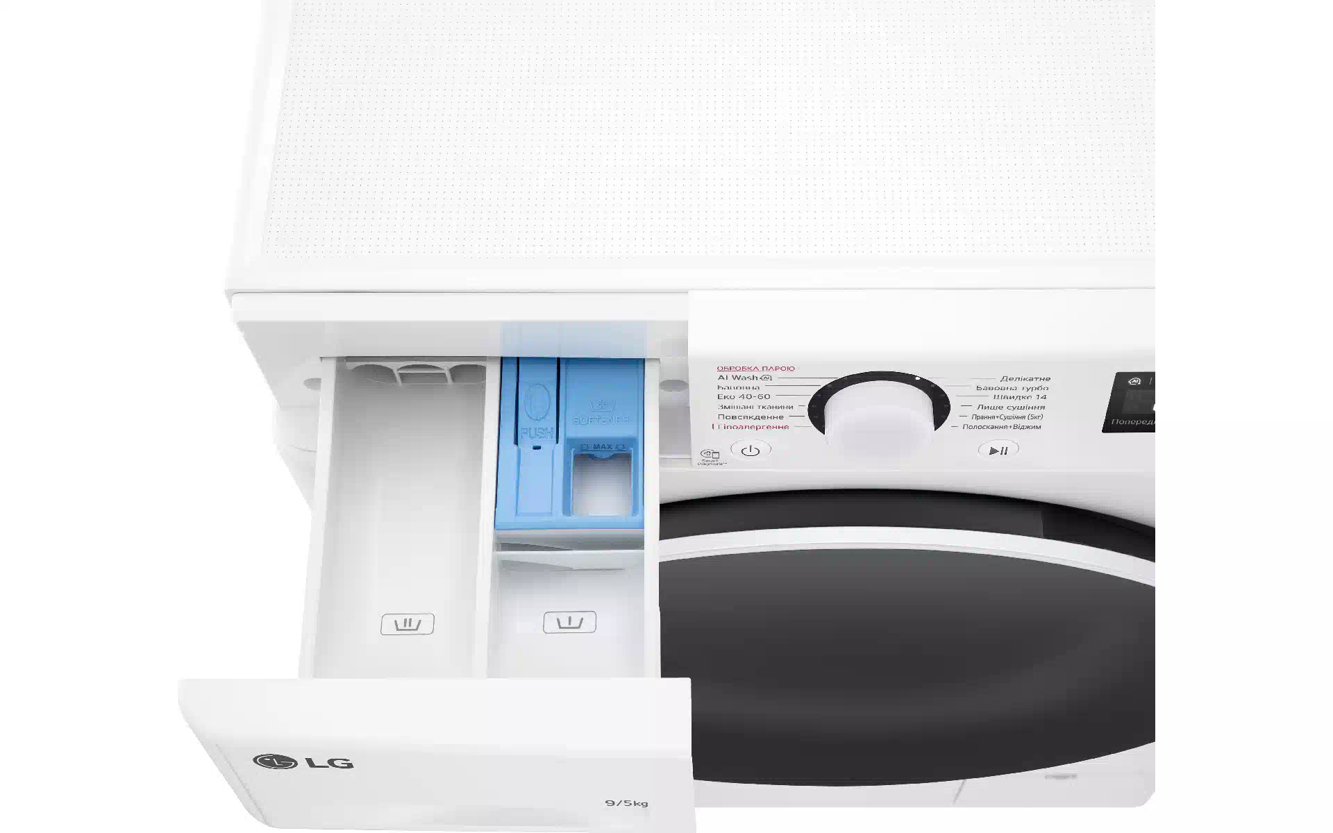 Waschtrockner LG, White (F2R5FG0W) Kaufen Sie neu und original, voll ausgestattet, ohne Auspacken in der Ukraine, in einem Lager in Kiew, mit offizieller Garantie und technischem Support vom Hersteller in der Ukraine.