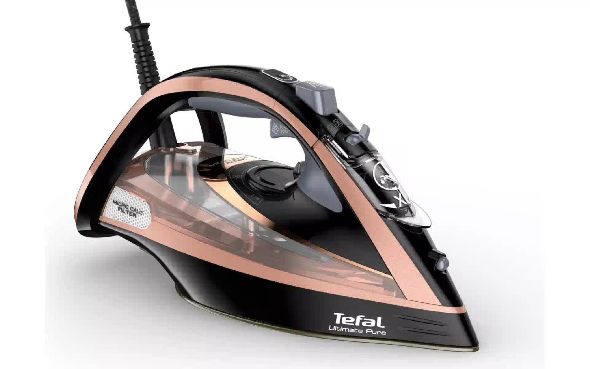Eisen Tefal Ultimate Pure, Black/Pink (FV9845E0) Kaufen Sie neu und original, voll ausgestattet, ohne Auspacken in der Ukraine, in einem Lager in Kiew, mit offizieller Garantie und technischem Support vom Hersteller in der Ukraine.