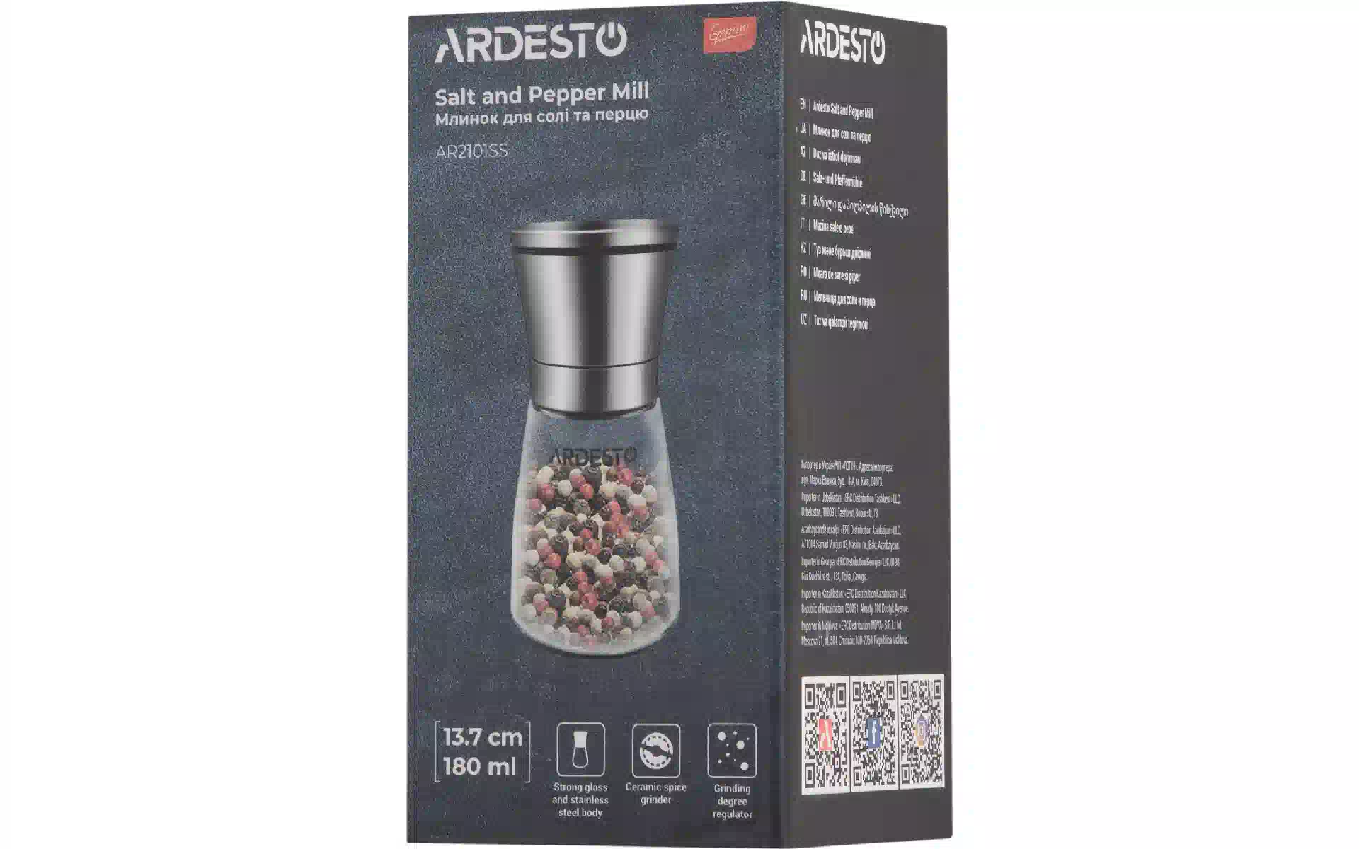 Μύλος αλατιού και πιπεριού Ardesto Gemini, Transparent (AR2101SS) αγοράστε καινούργιο και πρωτότυπο, πλήρως εξοπλισμένο, χωρίς αποσυσκευασία στην Ουκρανία, από αποθήκη στο Κίεβο, με επίσημη εγγύηση και τεχνική υποστήριξη από τον Κατασκευαστή στην Ο