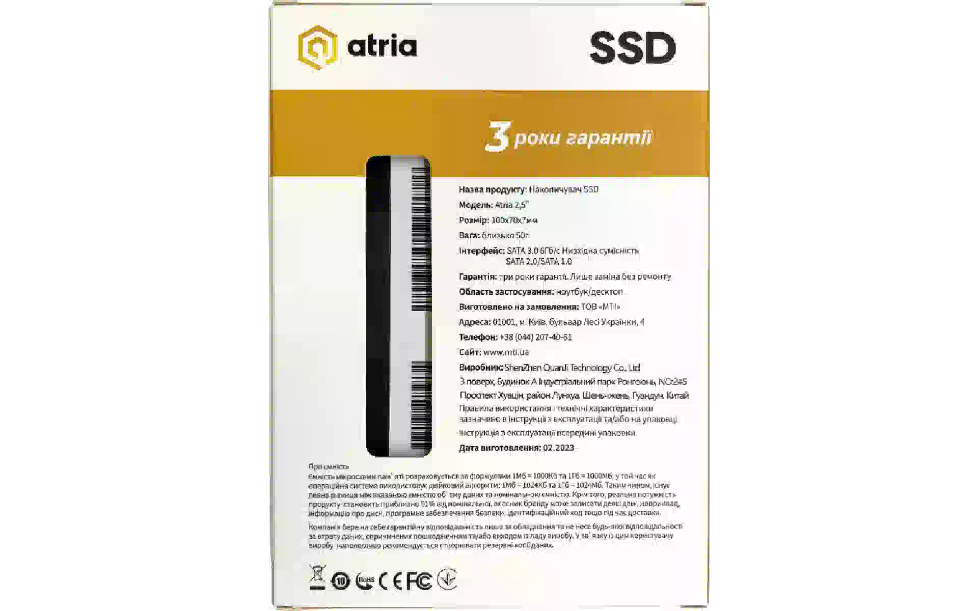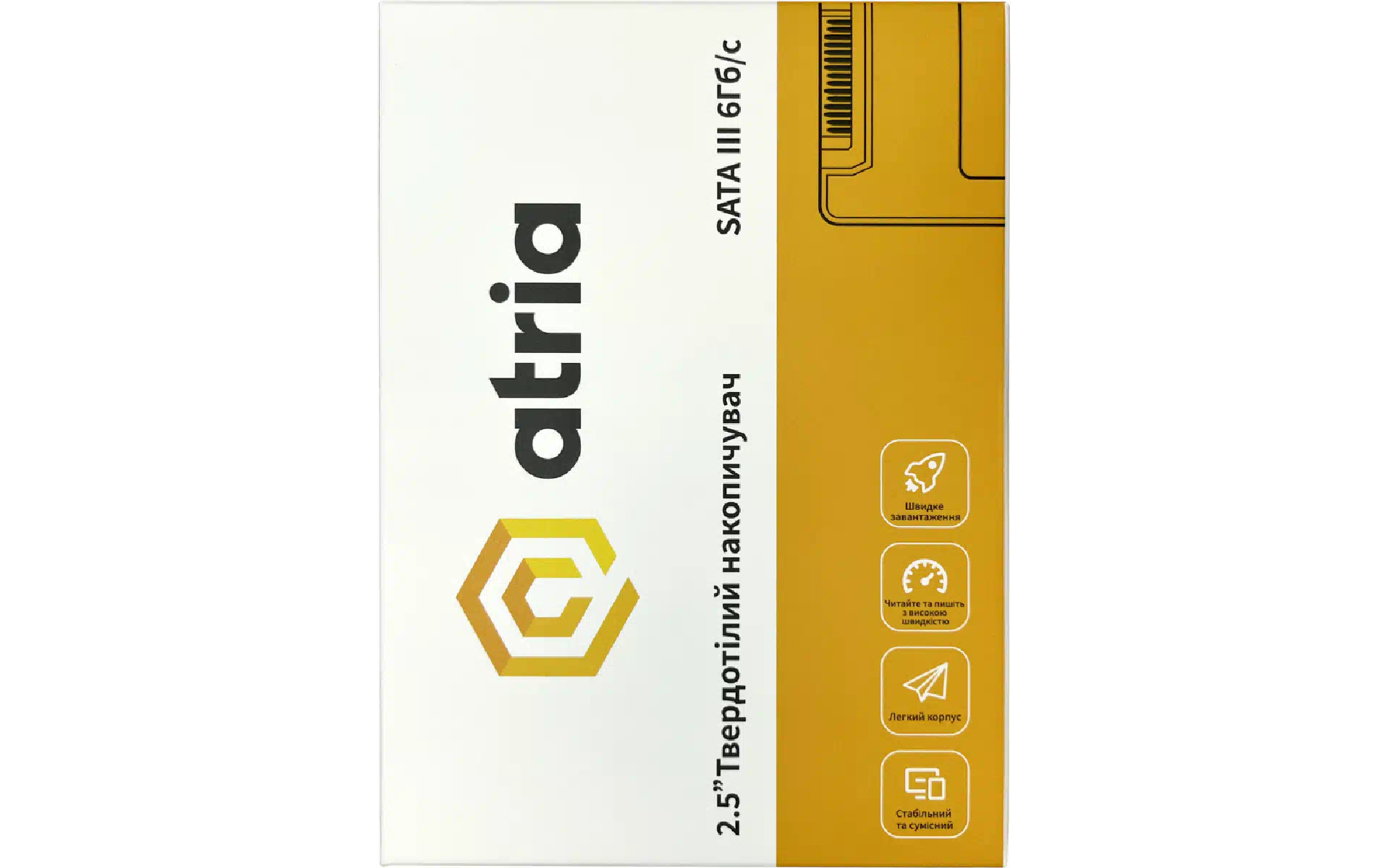 Αποθήκευση SSD Atria (ATSATXT200/256) αγοράστε καινούργιο και πρωτότυπο, πλήρως εξοπλισμένο, χωρίς αποσυσκευασία στην Ουκρανία, από αποθήκη στο Κίεβο, με επίσημη εγγύηση και τεχνική υποστήριξη από τον Κατασκευαστή στην Ουκρανία.