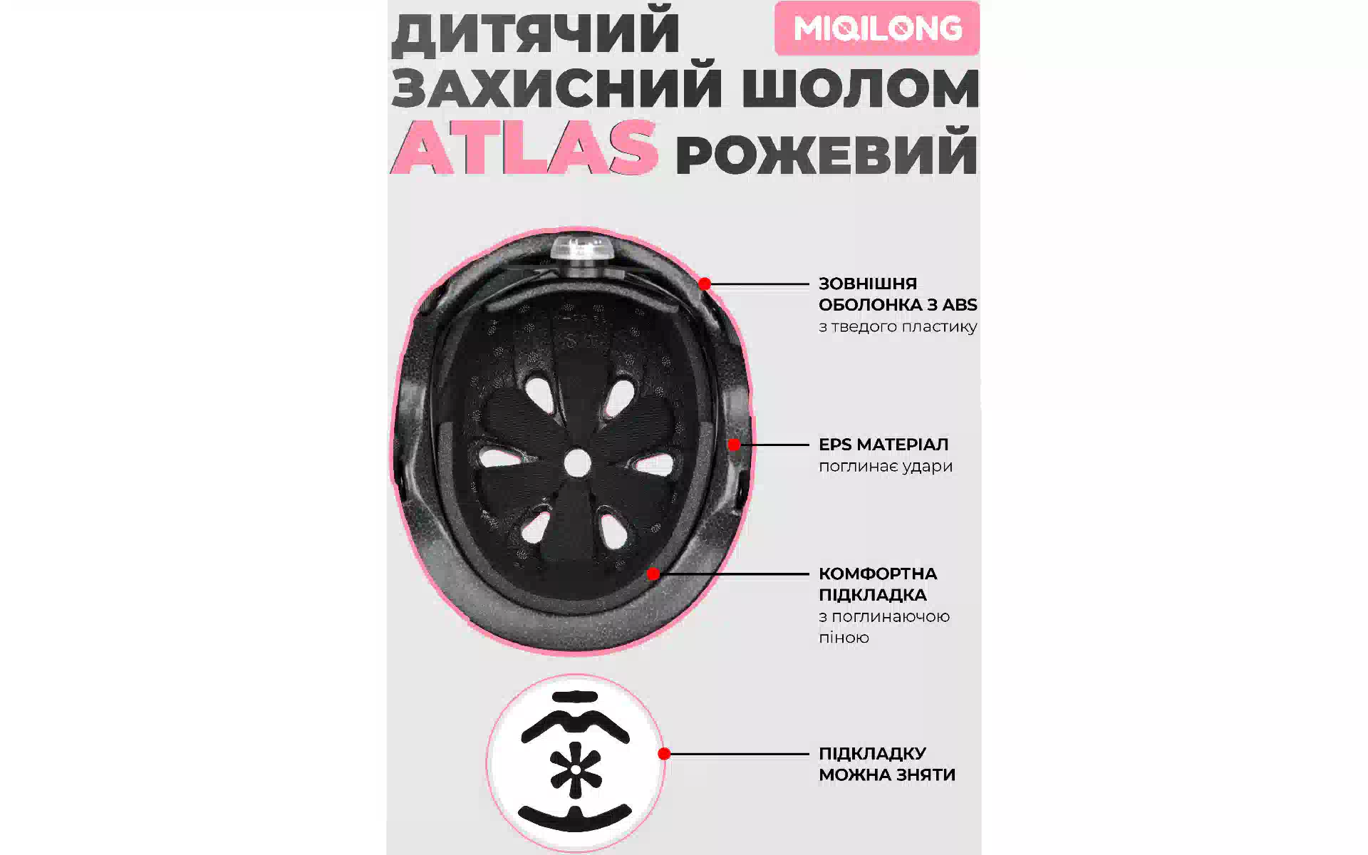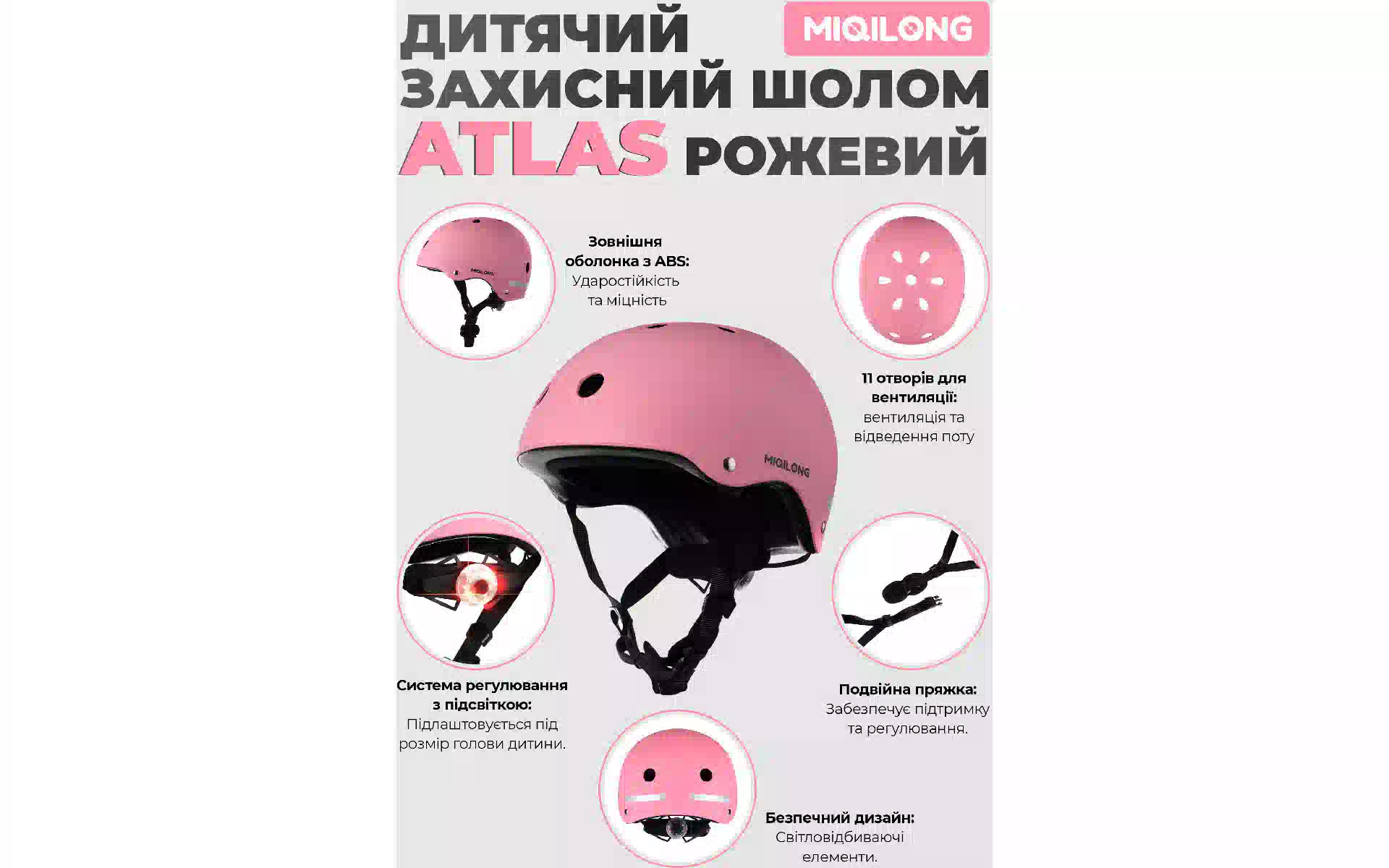 Παιδικό κράνος Miqilong Atlas, Pink (ATLAS-M-PINK) αγοράστε καινούργιο και πρωτότυπο, πλήρως εξοπλισμένο, χωρίς αποσυσκευασία στην Ουκρανία, από αποθήκη στο Κίεβο, με επίσημη εγγύηση και τεχνική υποστήριξη από τον Κατασκευαστή στην Ουκρανία.