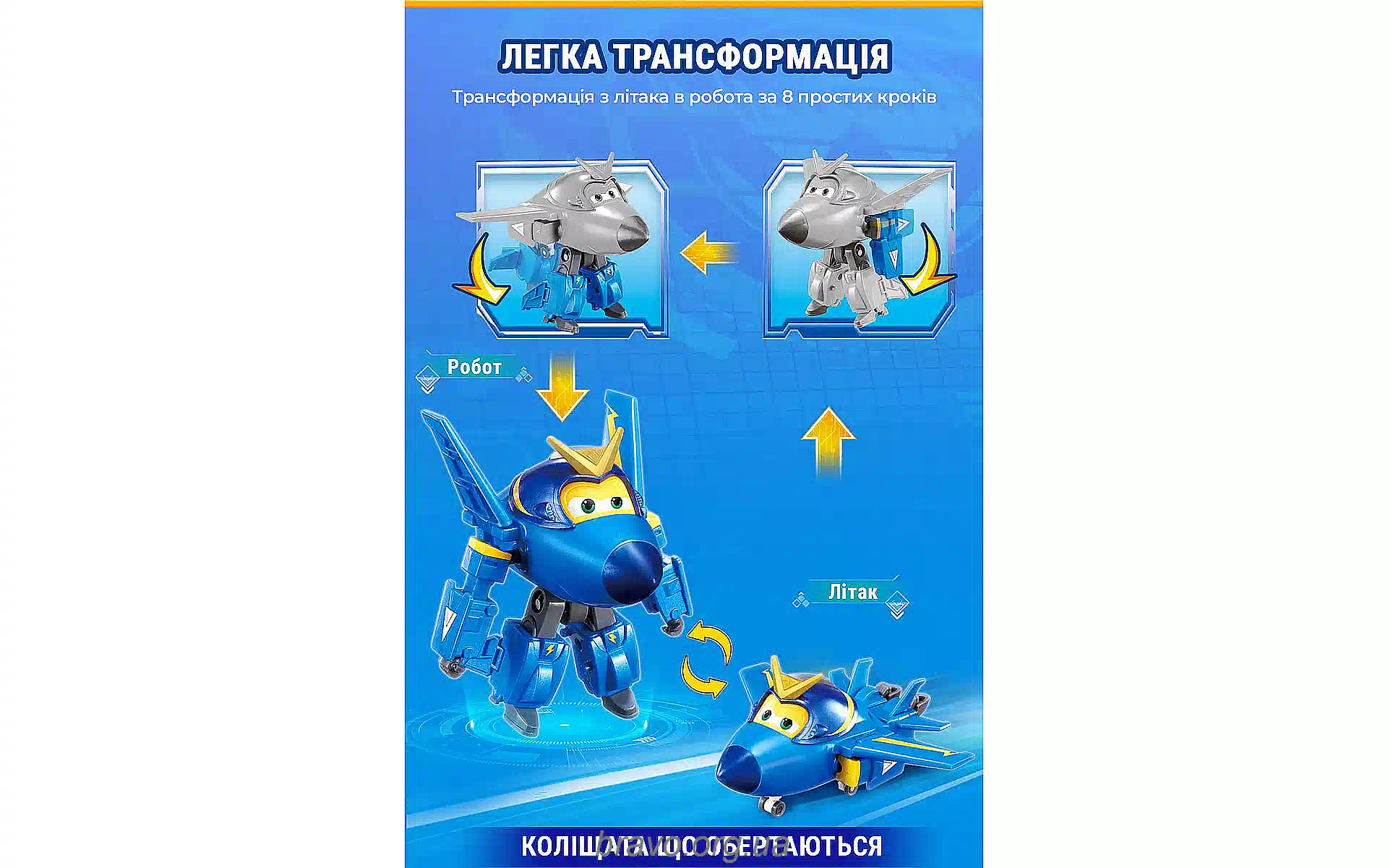 Φιγούρα μετασχηματιστή Super Wings (EU770230) αγοράστε καινούργιο και πρωτότυπο, πλήρως εξοπλισμένο, χωρίς αποσυσκευασία στην Ουκρανία, από αποθήκη στο Κίεβο, με επίσημη εγγύηση και τεχνική υποστήριξη από τον Κατασκευαστή στην Ουκρανία.