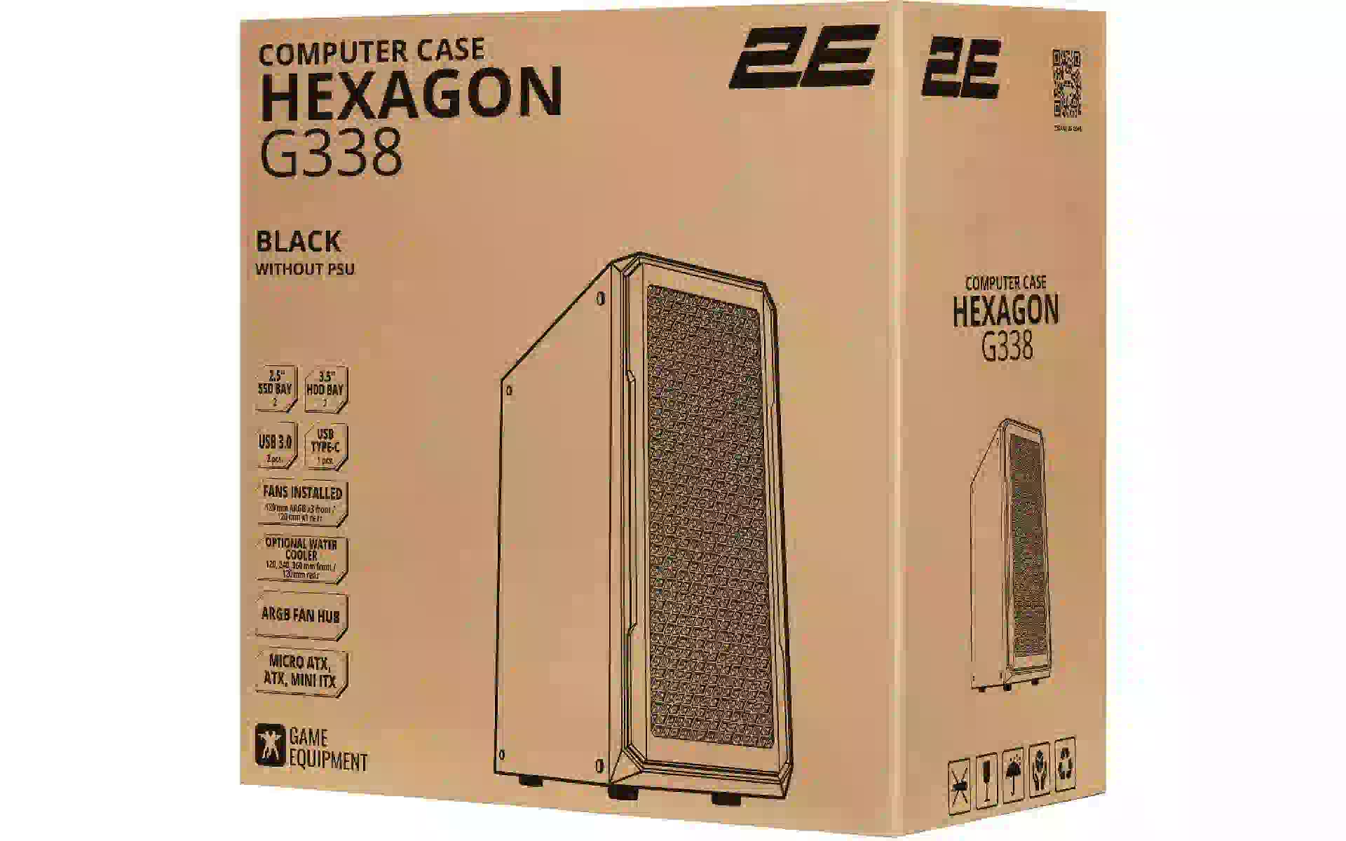 Gabinete para PC 2E Hexagon, Black (2E-G338) compre novo e original, totalmente equipado, sem desembalar na Ucrânia, num armazém em Kiev, com garantia oficial e suporte técnico do Fabricante na Ucrânia.