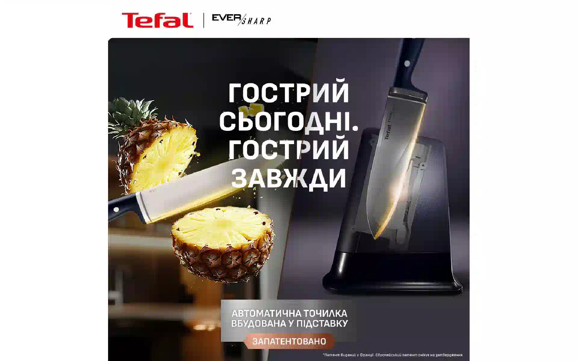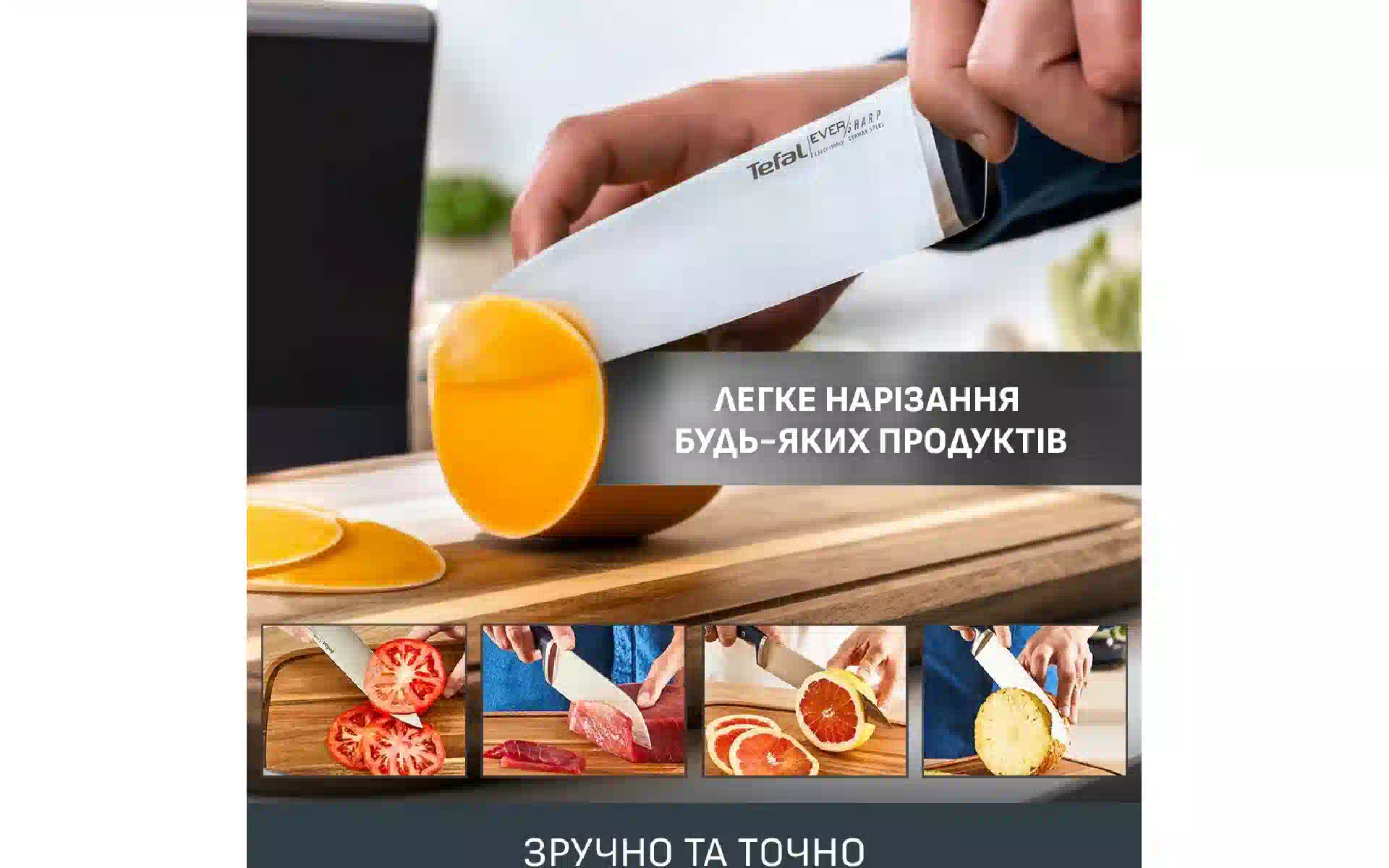 Faca de chef Tefal Eversharp, Black (K297S244) compre novo e original, totalmente equipado, sem desembalar na Ucrânia, num armazém em Kiev, com garantia oficial e suporte técnico do Fabricante na Ucrânia.