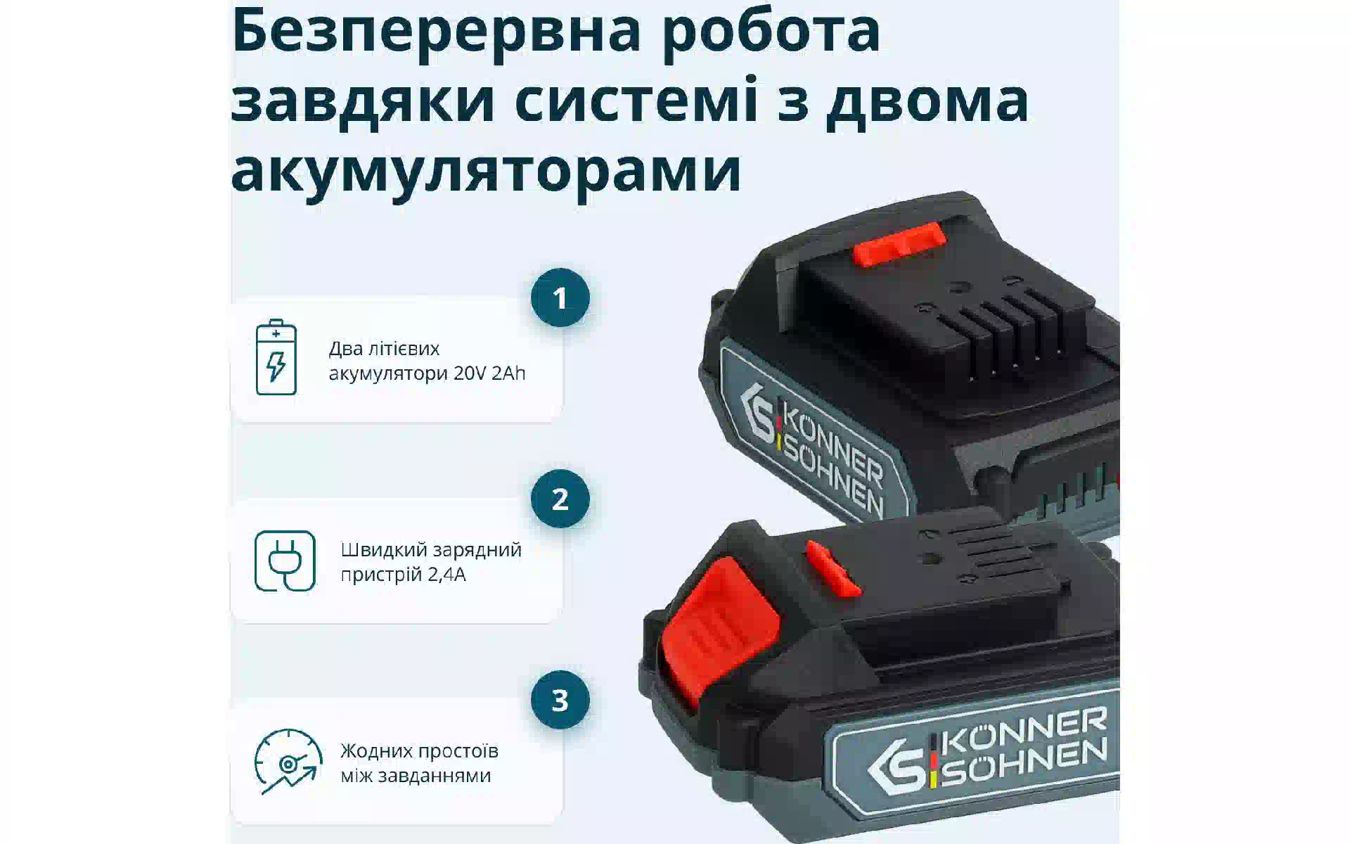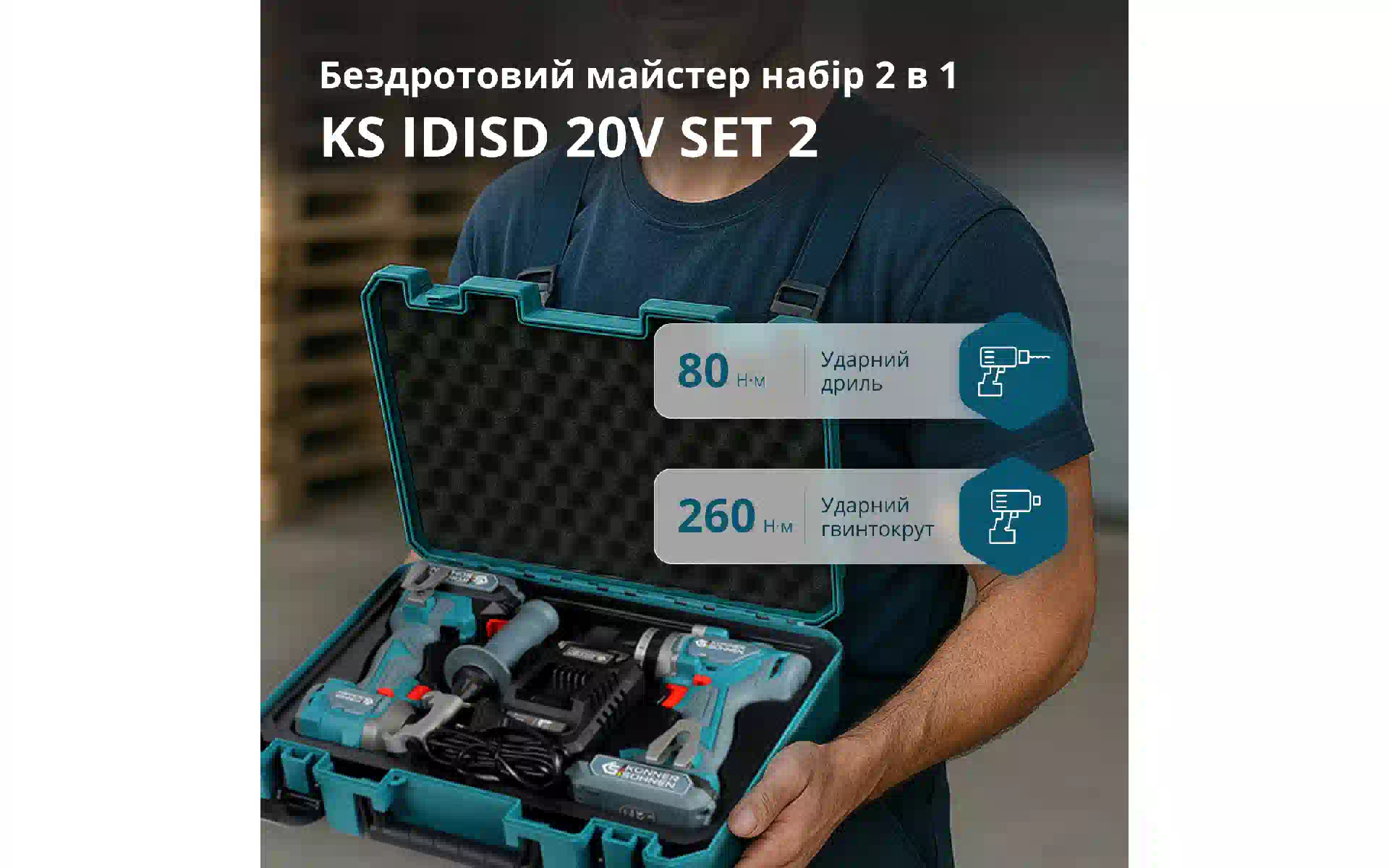 Набор аккумуляторного инструмента Konner&Sohnen (KSIDISD20VSET2) купить новый и оригинальный, в полной комплектации, без распаковки в Украине, со склада в г. Киев, с официальной гарантией и технической поддержкой Производителя в Украине.