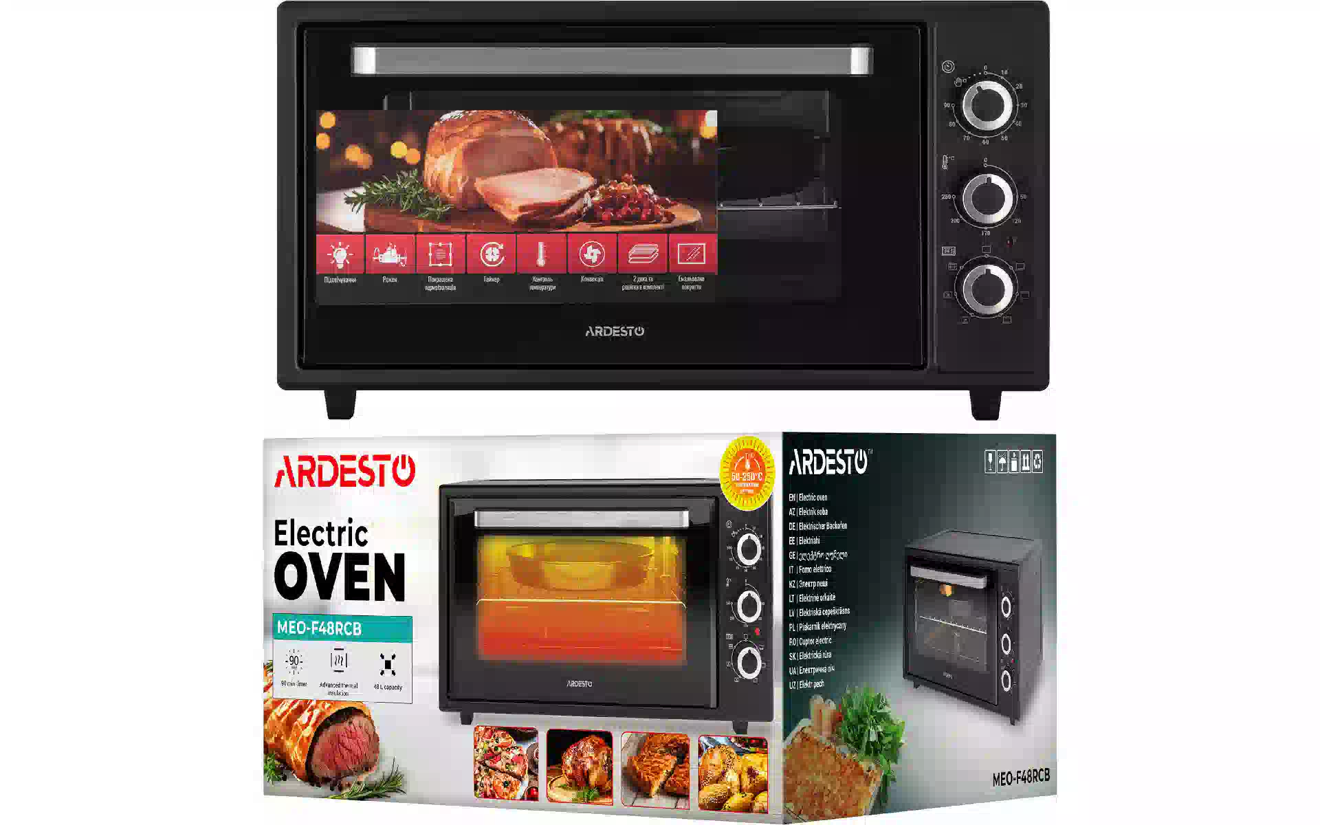 Электропечь Ardesto (MEO-F48RCB) купить новый и оригинальный, в полной комплектации, без распаковки в Украине, со склада в г. Киев, с официальной гарантией и технической поддержкой Производителя в Украине.