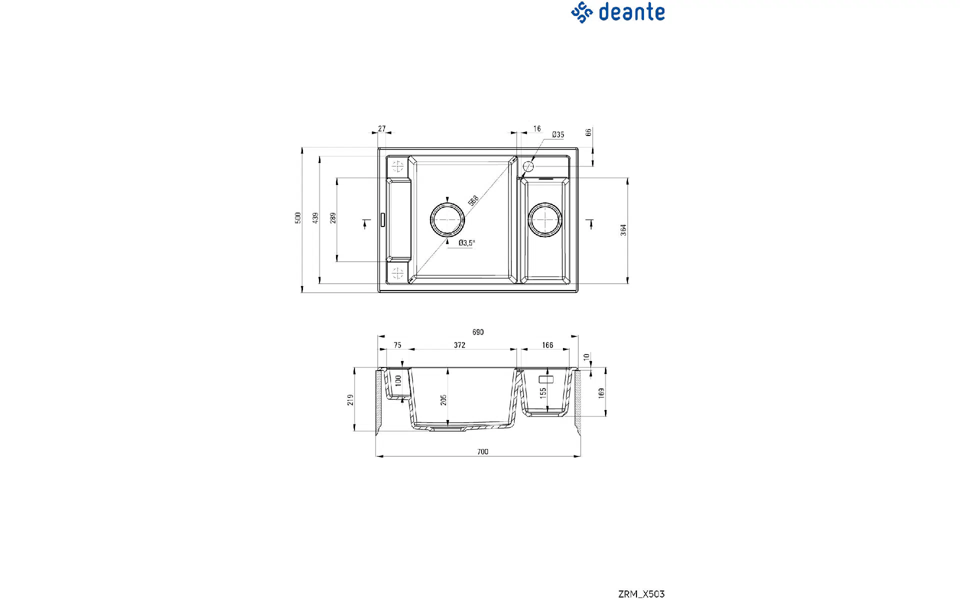 Кухонная мойка Deante Magnetic (ZRM_A503) купить новый и оригинальный, в полной комплектации, без распаковки в Украине, со склада в г. Киев, с официальной гарантией и технической поддержкой Производителя в Украине.