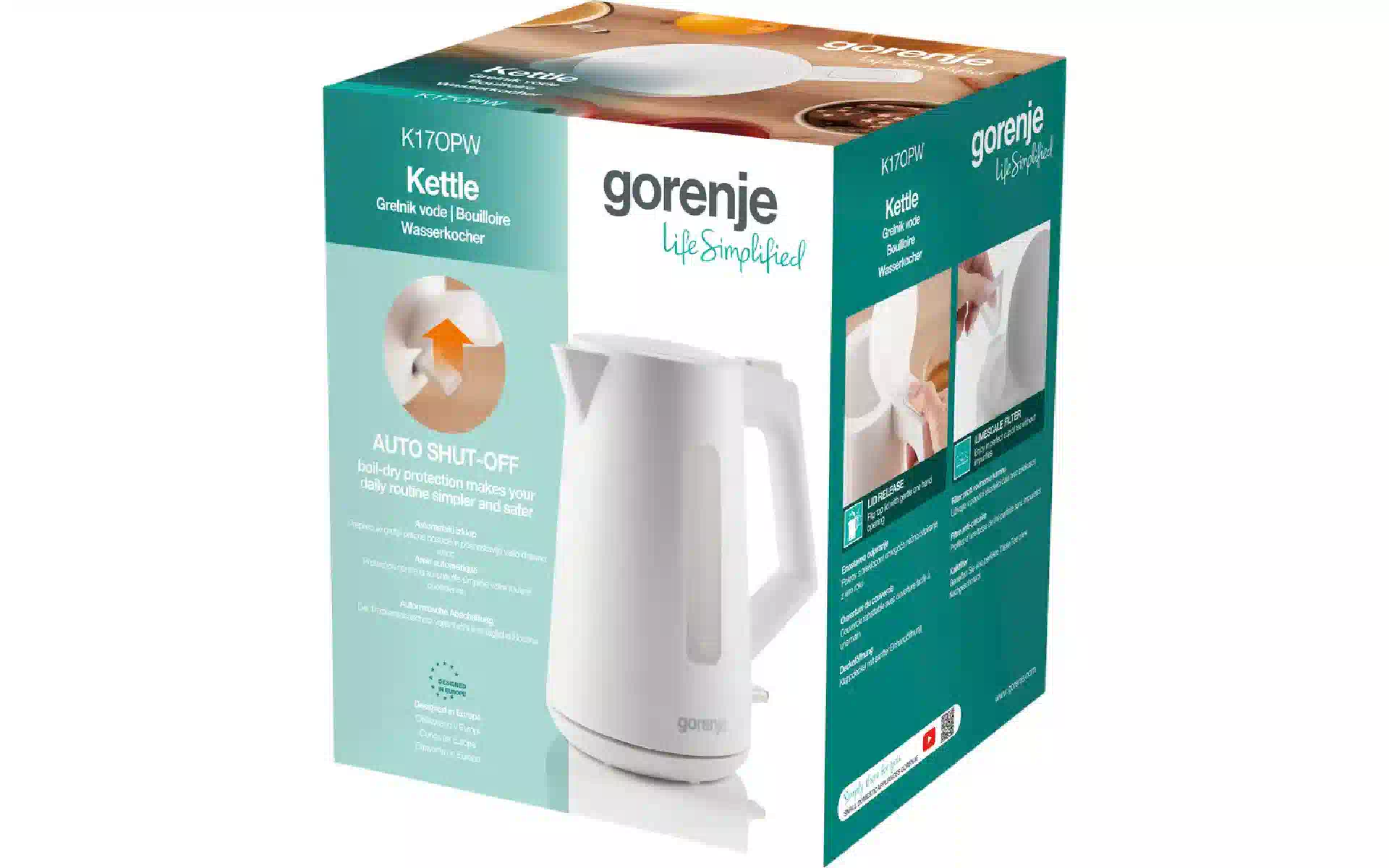 Электрочайник Gorenje (K17OPW) купить новый и оригинальный, в полной комплектации, без распаковки в Украине, со склада в г. Киев, с официальной гарантией и технической поддержкой Производителя в Украине.