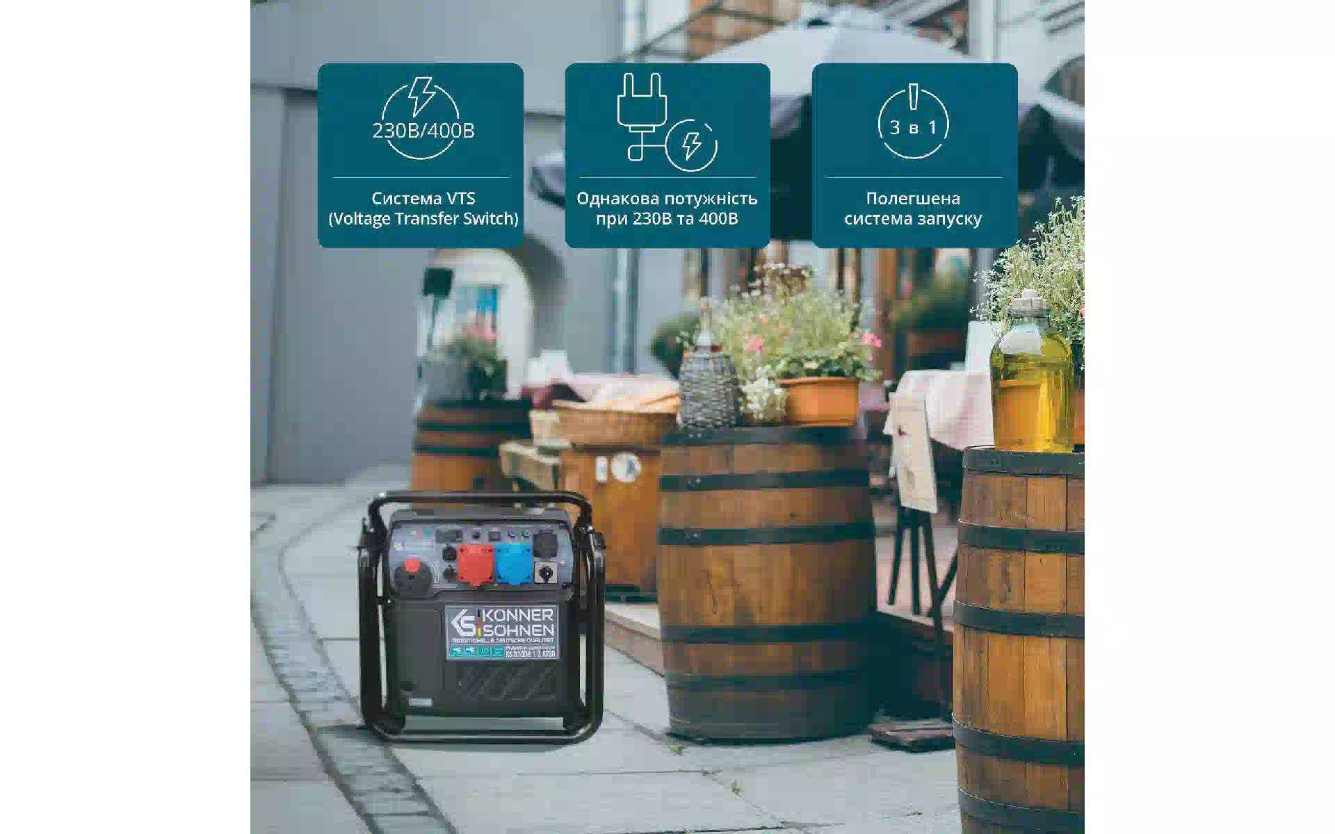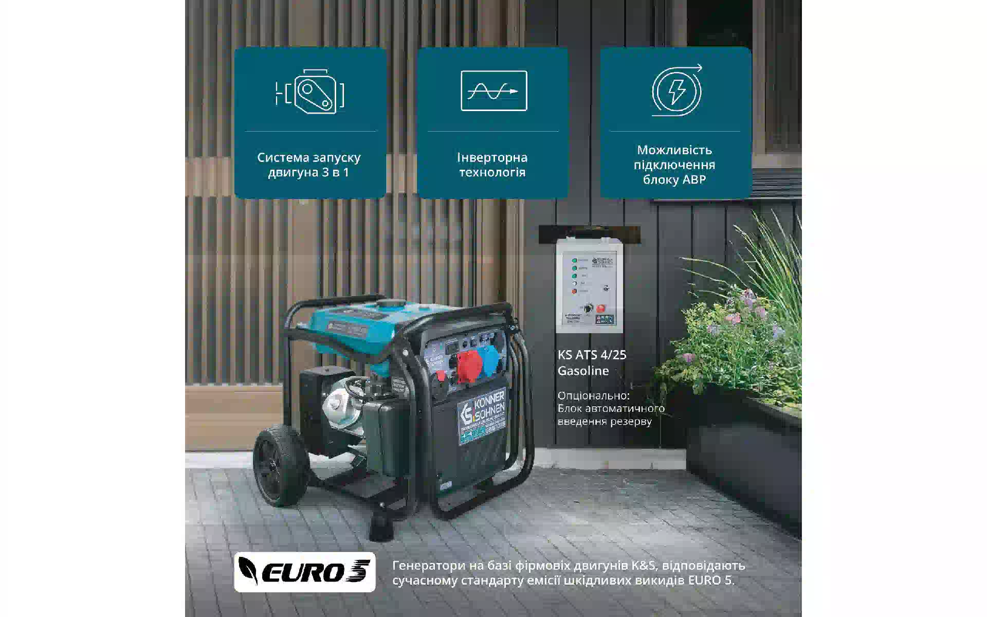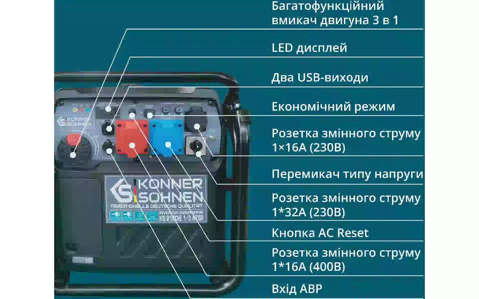 Генератор бензиновый инверторный Konner&Sohnen, 8.5 кВт, 1/3 фазы, АВР, электростартер (KS 8100iE 1/3 ATSR) купить новый и оригинальный, в полной комплектации, без распаковки в Украине, со склада в г. Киев, с официальной гарантией и технической под