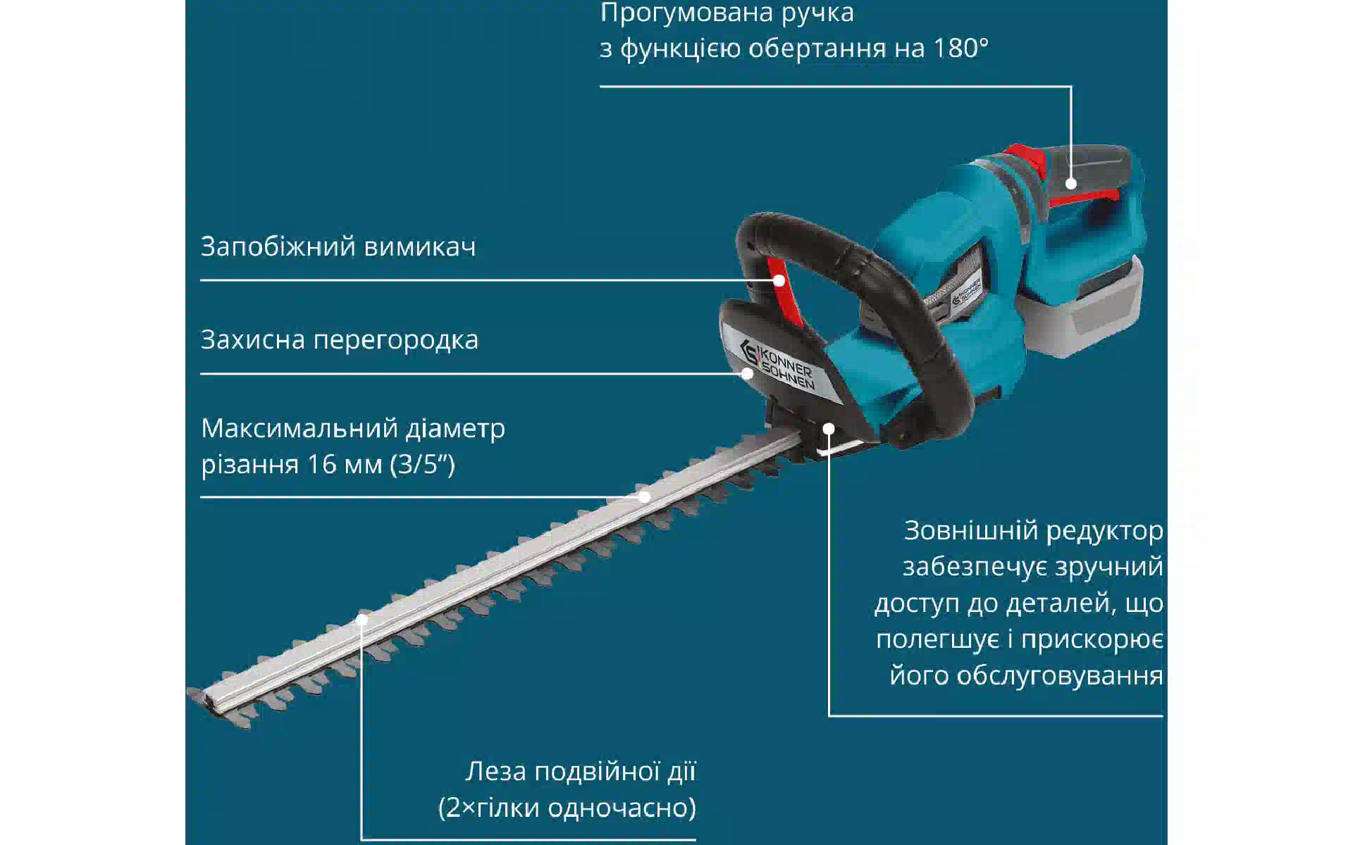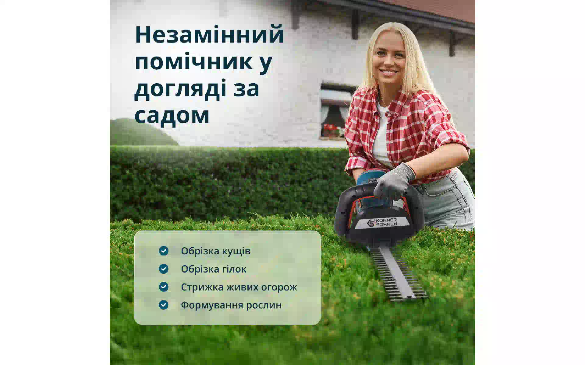 Кусторез Konner&Sohnen (KSHT-20VSET) купить новый и оригинальный, в полной комплектации, без распаковки в Украине, со склада в г. Киев, с официальной гарантией и технической поддержкой Производителя в Украине.