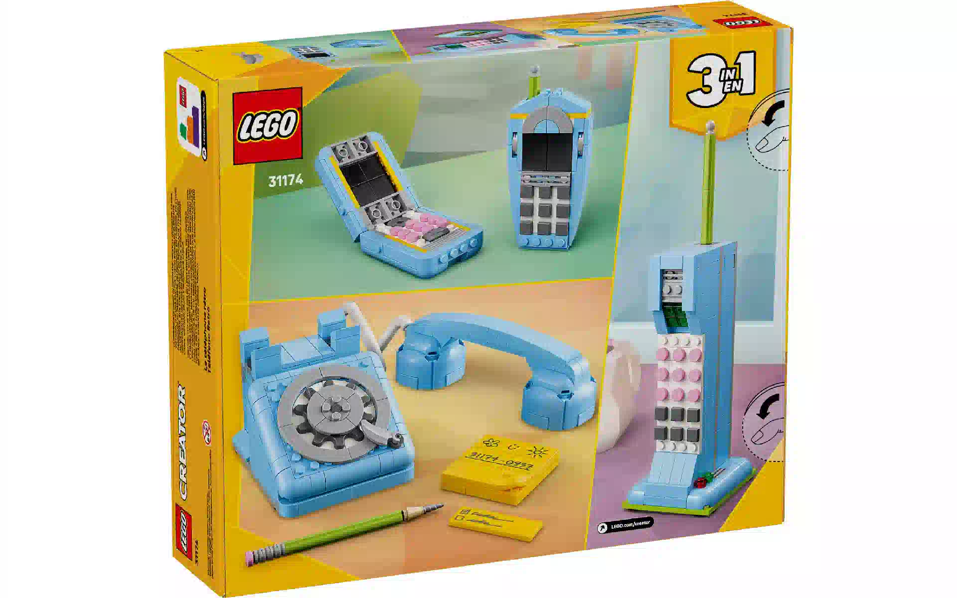 Konstruktor LEGO Creator 3in1 Retro Telephone (31174) kupite novo in originalno, popolnoma opremljeno, brez razpakiranja v Ukrajini, iz skladišča v Kijevu, z uradno garancijo in tehnično podporo proizvajalca v Ukrajini.