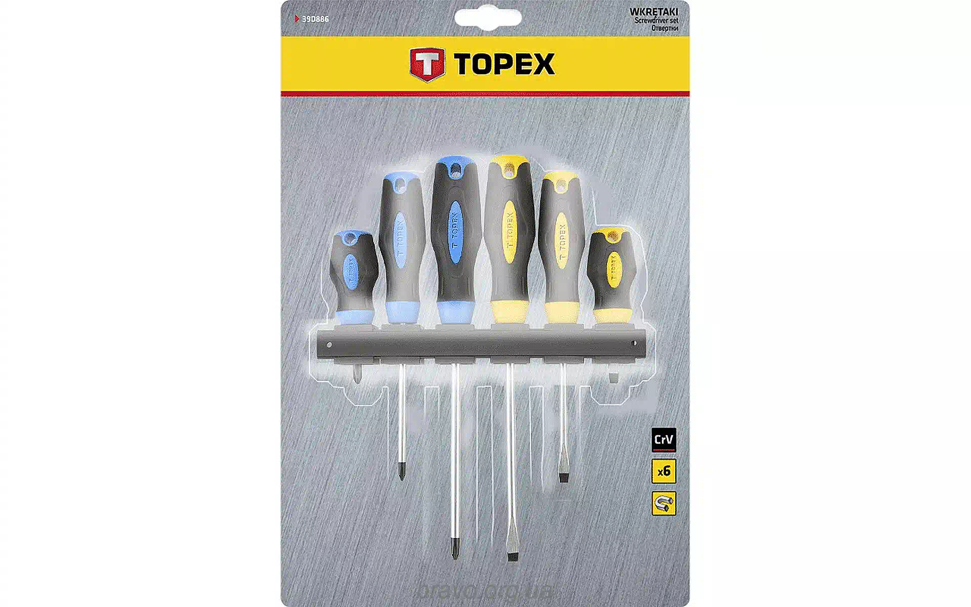 Komplet izvijačev Topex (39D886) kupite novo in originalno, popolnoma opremljeno, brez razpakiranja v Ukrajini, iz skladišča v Kijevu, z uradno garancijo in tehnično podporo proizvajalca v Ukrajini.