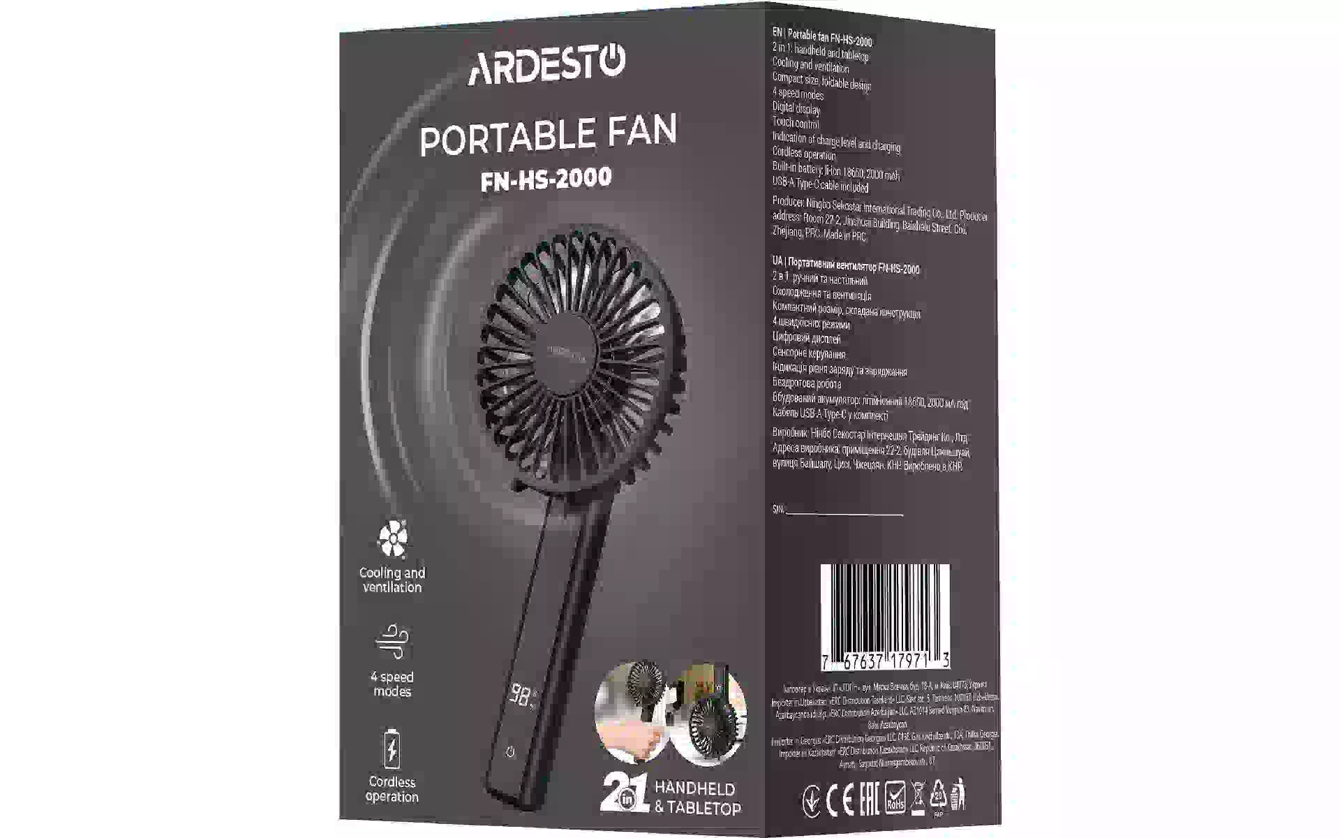 Вентилятор портативний Ardesto (FN-HS-2000) купити новий та оригінальний, у повній комплектації, без розпакування в Україні, зі складу у м. Київ, з офіційною гарантією та технічною підтримкою Виробника в Україні.