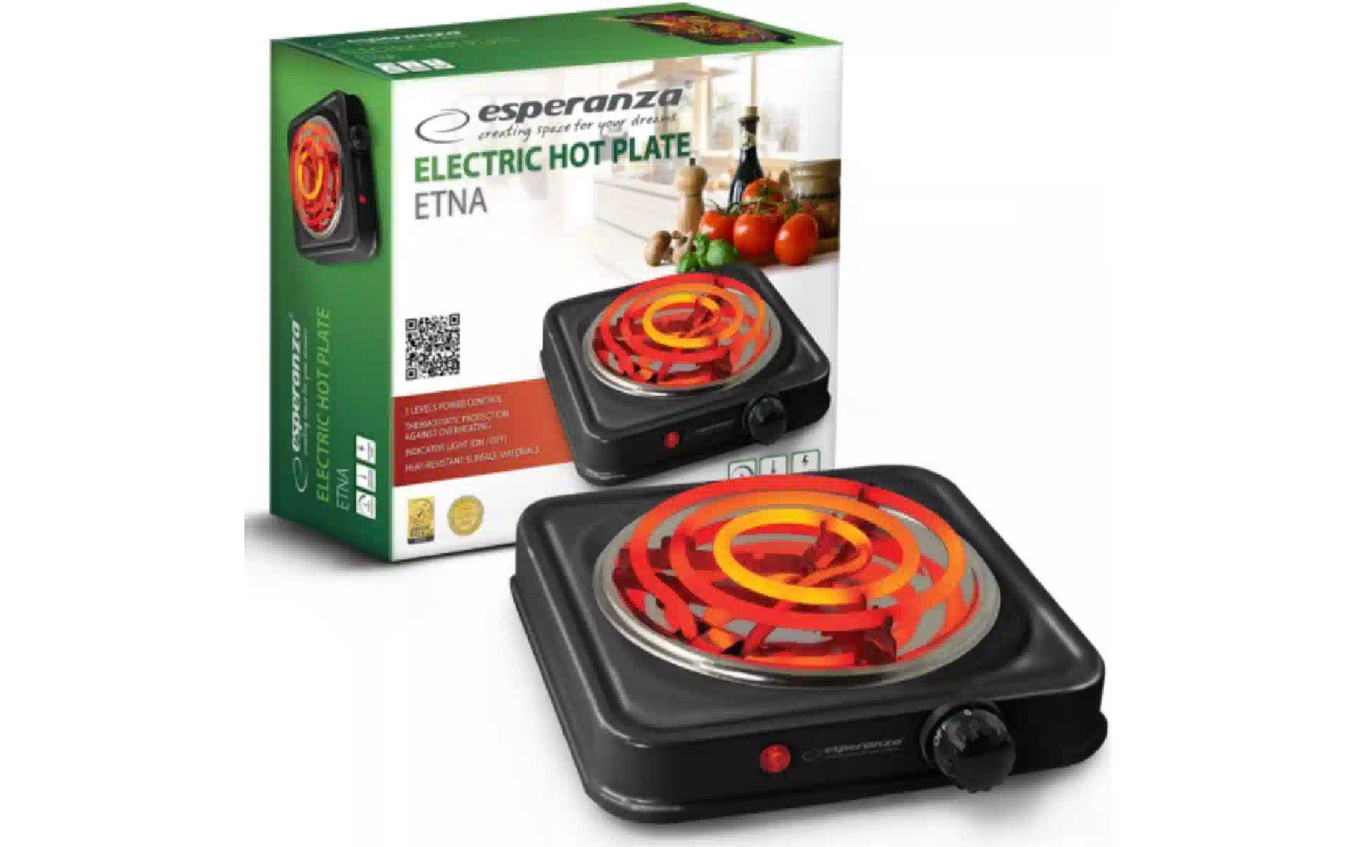 Електроплитка Esperanza (EKH012K), 1000 Вт, Black купити новий та оригінальний, у повній комплектації, без розпакування в Україні, зі складу у м. Київ, з офіційною гарантією та технічною підтримкою Виробника в Україні.