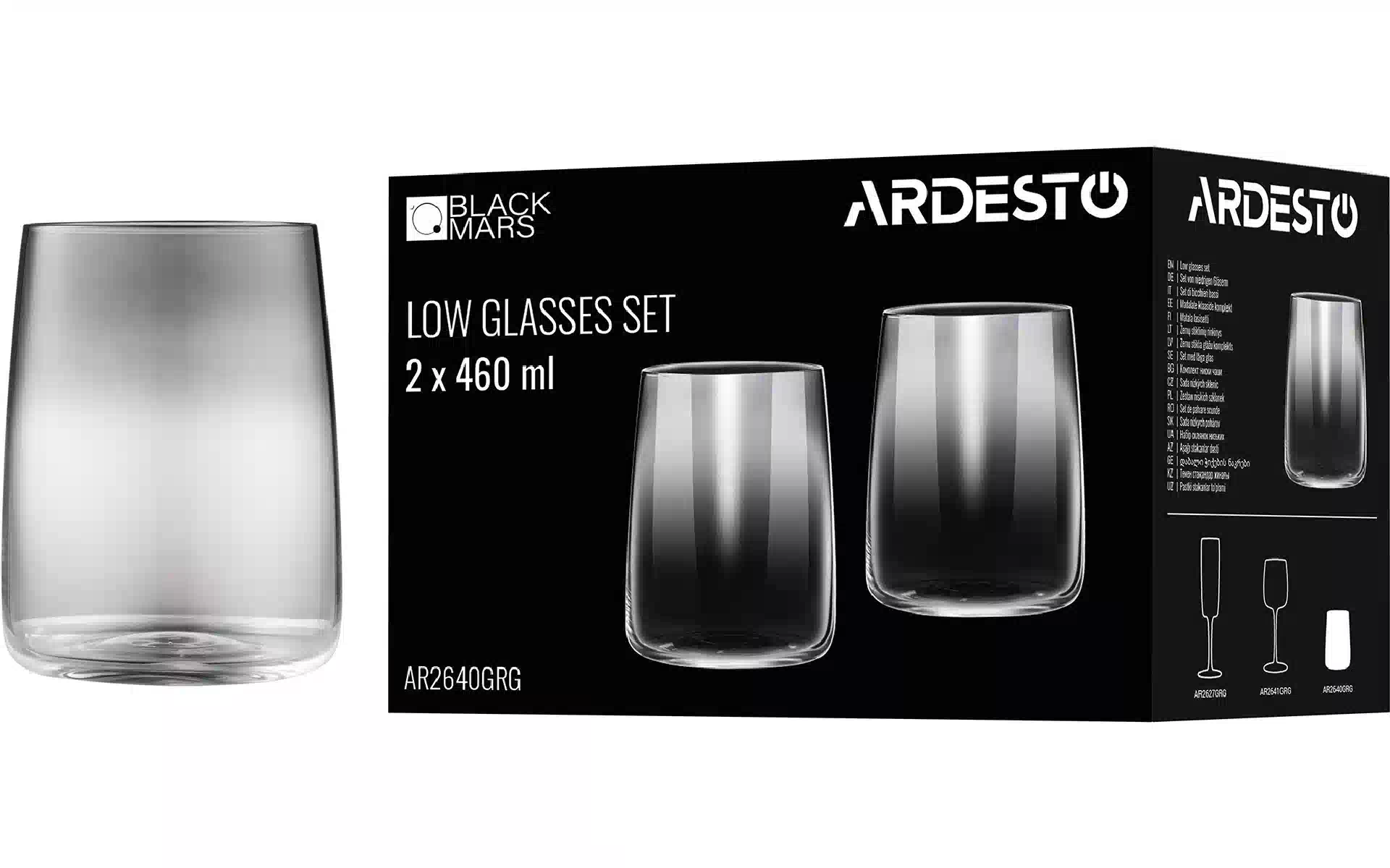Склянка низька Ardesto Black Mars Mira (AR2640GRG), 460 мл, 2 шт, Grey купити новий та оригінальний, у повній комплектації, без розпакування в Україні, зі складу у м. Київ, з офіційною гарантією та технічною підтримкою Виробника в Україні.